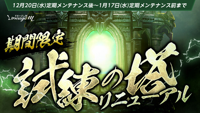 PCオンラインRPG「リネージュ」のモバイル版タイトル『Lineage M(以下、リネージュM)』のサービス、運営をしているエヌ・シー・ジャパン株式会社(東京都港区、代表取締役:金 澤憲(キム テクホン) 以下、エヌシージャパン)は、2023年12月20日(水)に、クリスマスイベント第2弾として期間限定特殊ダンジョン「パトラッシ村」の開催、および挑戦型ダンジョン「試練の塔」の復刻をお知らせします。