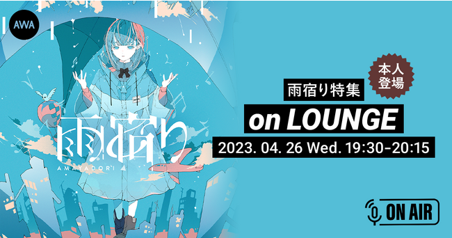 今回のイベントは、新曲『カナヅチ』のリリースを記念して開催されるもので、新曲はもちろん、これまでの楽曲もオンエアいたします。本イベントには、リアルタイムで雨宿りの“水野あつ”と“Sooda”が音声とチャットで参加し、ここでしか聞けない新曲「カナヅチ」の制作に纏わるエピソードについてユーザーとコミニュケーションを取りながらトーク。ラウンジは、どなたでも無料で参加することができ、AWAアプリを事前にダウンロードしていれば、リクエストやアーティストとの交流など、よりお楽しみいただけます。ぜひ、雨宿りの2人が登場するAWAラウンジをお楽しみください。■【水野あつ&Sooda登場】雨宿り特集 on LOUNGE概要開催日時:2023年4月26日(水) 19:30~20:15※出演が急遽キャンセルになる可能性もございます。▼参加URLhttps://mf.awa.fm/open_amayadori_0426_pr■雨宿り2022年11月に始動した、“水野あつ”と“Sooda”二人のシンガーソングライターによる音楽ユニット。ユニット名には、日常のつらいことからそっと雨宿りするような気持ちで聴ける音楽を届けたい、という想いが込められている。「雨宿り」の音楽の情景に登場するのは二人の空想の中から産まれた少女「アメ」。楽曲の世界観を体現する存在でもあり、あなたの心に寄り添う優しい存在。「少しだけ寄り道したら、また一緒に行こう!」アメはそんな前向きなメッセージを届けているのかもしれない。■アプリ概要「AWA(アワ)」は、株式会社サイバーエージェントとエイベックス・デジタル株式会社の共同出資によるAWA株式会社が提供する、サブスクリプション型(定額制)音楽ストリーミングサービスです。2015年5月にサービスの提供を開始し、配信楽曲数は1億2000万曲、著名人およびユーザーが作成したプレイリスト数は約1,300万件におよびます。全機能が利用できる月額980円(税込)の「STANDARDプラン」や「オフライン再生」を除くすべての機能を月額無料で利用できる「FREEプラン」のほか、中学生以上の学生を対象とした、月々480円(税込)で全機能が利用できる「学生プラン」、月額270円(税込)で特定のアーティストが聴き放題になる「アーティストプラン」など、各種料金プランが充実しています。「AWA」は、スマートフォンをはじめ、パソコン、テレビ、カーナビ、ウェアラブル端末、スマートスピーカーなど様々なデバイスにも対応。楽曲に合わせて歌詞をリアルタイムに美しくアニメーションさせる機能「LYRIC DIVE(リリックダイブ)」や、音声ライブ配信、ギフティング機能を追加したユーザー同士がリアルタイムに、同じ空間で同じ音楽を楽しめるオンライン空間「LOUNGE(ラウンジ)」など、サービス開始以来、ユーザーのニーズや視聴環境に合わせて様々なプランや機能を拡充し、国内最大規模の音楽ストリーミングサービスへと成長しています。名称:「AWA(アワ)」 https://awa.fm/推奨環境:<スマートフォン版>iOS 14.0以降、Android 10.0以降<PC版>Windows 10(32/64bit)、Mac OS X 10.11 (El Capitan)以上<ブラウザ> Google Chrome (最新版)、Microsoft Edge (最新版)、Safari (最新版)価格:STANDARDプラン(月額 税込980円)/ FREEプラン(月額 無料)/学生プラン(月額 税込480円)/アーティストプラン(月額 税込270円※特定の1アーティストのみ聴き放題)提供開始:2015年5月27日■URLAWA:https://awa.fm/App Store:https://itunes.apple.com/jp/app/id980578855Google Play:https://play.google.com/store/apps/details?id=fm.awa.liverpoolデスクトップ版アプリ:https://awa.fm/download/AWA LOUNGEブラウザ版:https://app.awa.fm/lounge/AWA最新情報:https://news.awa.fm/AWA公式Twitter:https://twitter.com/awa_official?lang=jaAWA公式LINE:https://lin.ee/21w3f0k■会社概要社名:AWA株式会社(読み:アワ)所在地:東京都港区三田一丁目4番1号 住友不動産麻布十番ビル 代表者:代表取締役CEO 冨樫 晃己事業内容:音楽ストリーミングサービス 等設立日:2014年12月1日■お問い合わせ先AWA広報担当press@awa.fm