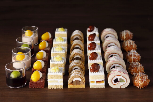 秋スイーツを思う存分満喫したい方にはスイーツビュッフェがおすすめです。「モンブラン」や「マロンショートケーキ」、「グレープゼリー」など、旬を迎えた栗とぶどうのスイーツをはじめ、ホテルニューオータニのシグネチャースイーツである「スーパーメロンショートケーキ」など、王道から秋限定スイーツまで全18種類のスイーツをお愉しみいただけます。