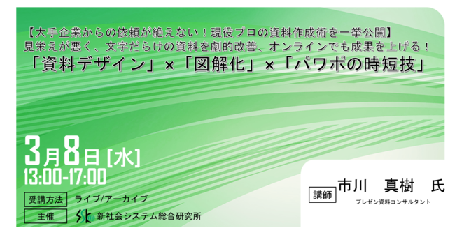 ビジネスセミナーを企画開催する新社会システム総合研究所(SSK)は、下記セミナーを開催します。