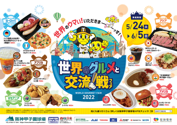 阪神電気鉄道株式会社(本社:大阪市福島区、社長:秦雅夫)が運営する阪神甲子園球場では、阪神タイガース主催の日本生命セ・パ交流戦全9試合(5月24日(火)~6月5日(日))において、「世界のグルメと交流!戦フェア」を開催します。