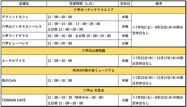 ※会期中無休。ただし六甲山サイレンスリゾートのみ8月~10月の毎週月曜休業