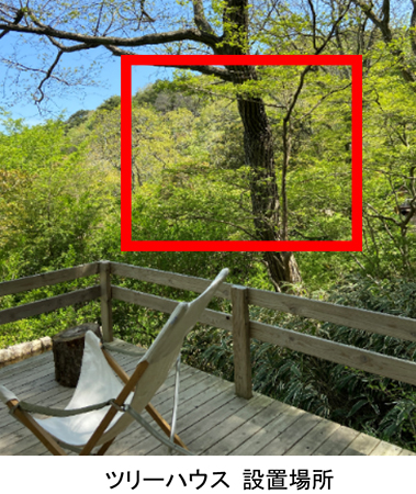 当ツリーハウスは、「SIKIガーデン」内に自生する栗の木を土台として設置いたします。ツリーハウスのテラス部分からは、樹上の風を感じながら普段とは違う視点でガーデンを眺めることができ、都会の喧騒を離れた六甲山の地で、お客様に四季折々の自然が紡ぎ出す心地よい音と寛ぎの時間をお届けします。