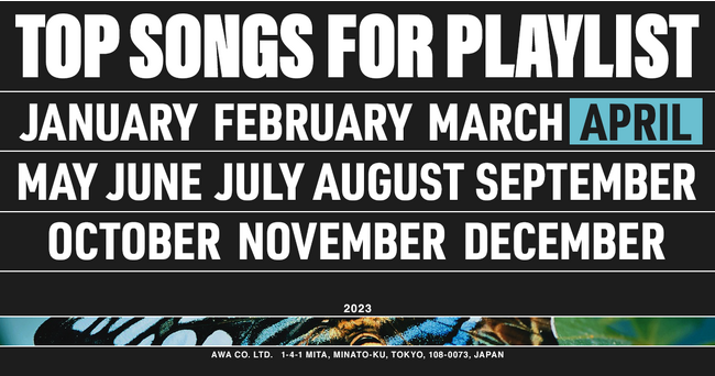 AWA株式会社(本社:東京都港区、代表取締役CEO:冨樫晃己)が運営する、サブスクリプション型(定額制)音楽ストリーミングサービス「AWA(アワ)」は、2023年4月1日(土)から4月30日(日)までに、ユーザーが作成したプレイリストへ採用された楽曲を集計し、4月度の『プレイリスト採用楽曲ランキング』を発表いたしました。