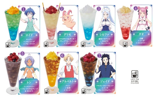 コラボドリンクは、作品のキャラクター「ロイド」「グリモ」「シルファ」「タオ」「レン」「アルベルト」「ジェイド」をイメージした全7種【各750円(税込)】をご用意します。さらに、注文特典としてコラボドリンク1品ご注文につき、オリジナルポストカード【全22種:第1弾ポストカード7種/第2弾ポストカード15種】の中から、1枚ランダムでプレゼント!