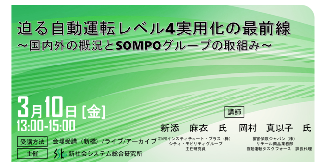 本セミナーでは、レベル4の特徴・特性、国内外の主要国におけるレベル4のサービスの開発状況、その実用化を支える枠組みである法規制の概要などを網羅的に取り上げます。