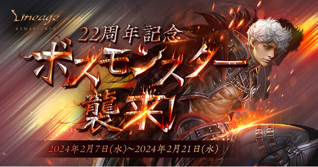 PC向けオンラインゲーム『リネージュ』をサービス、運営しているエヌ・シー・ジャパン株式会社(東京都港区、代表取締役:金 澤憲(キム テクホン))は、2024年2月7日(水)に、22周年記念特設サイト公開、およびイベント「22周年記念ボスモンスター襲来!」、「キング アマンの倉庫大放出キャンペーン」の開催をお知らせします。