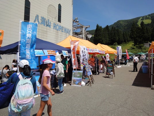 イベント当日は、ロープウェー山麓駅付近に、キッチンカーや八海醸造株式会社さまによるPRコーナーなどが出店し、お祭り気分が味わえます。標高1,147mに位置するロープウェー山頂駅付近では、冬期シーズン中の豊富な積雪を利用して作った雪山にて、そり遊びや雪遊びが体験できます。また、地元八海山城内観光協会による新鮮な夏野菜のふるまいや、バルーンアーティストによるバルーンアートなどをお楽しみいただけます。