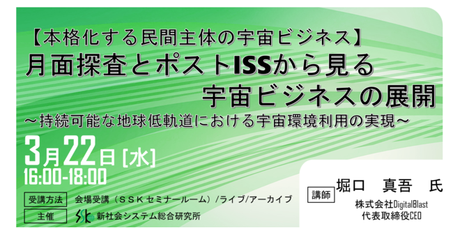 ビジネスセミナーを企画開催する新社会システム総合研究所(SSK)は、下記セミナーを開催します。