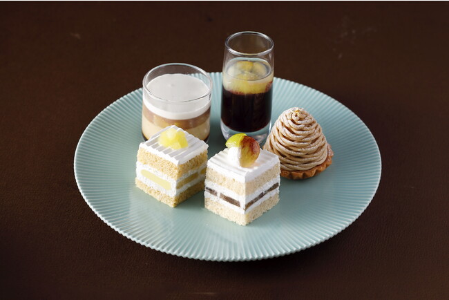 全3段からなるアフタヌーンティーの上段には、糖度14度以上の厳選した静岡県産マスクメロンを使用したホテルニューオータニのシグネチャースイーツ『スーパーメロンショートケーキ』のほか、季節限定の栗とぶどうを使用したスイーツ がラインアップ。なかでも一番の注目は、“和栗本来の味わいをお愉しみいただきたい”という総料理長 中島眞介の強い想いから誕生した 『スーパーモンブラン』。厳選した旬の和栗を使用し、中の素材もさらにパワーアップした絶品モンブランと、ホテルニューオータニの誇る定番スイーツ『スーパーメロンショートケーキ』、2つの“スーパーシリーズ”の食べ比べが一度に叶うのは、『新アフタヌーンティーセット~栗とぶどう~』だけです。他にも、アフタヌーンティー限定で味わえる 『グレープショートケーキ』、季節限定のグラススイーツ『マロンプリン』『グレープゼリー』といった垂涎モノのスイーツが並びます。