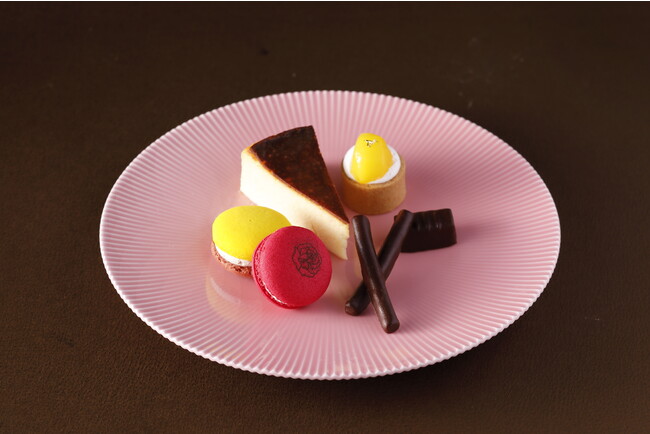 中段には、定番人気の軽いとろけるような口当たりの 『バスクチーズケーキ』 やシンプルながら栗の食感と風味が広がる 『マロンタルト』 、パティシエ特製『2種のマカロン』 、濃厚な 『ボンボンショコラ』 など手軽にお愉しみいただけるスイーツが一皿に。