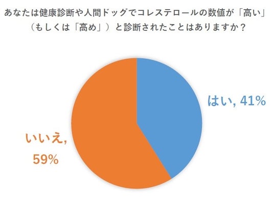 高血圧は30.4%、コレステロールは41%の人が「健康診断や人間ドッグで数値が「高い」(もしくは「高め」)と診断されたことがある」と回答。どちらの項目も 約3人に1人が指摘されているという結果となりました。