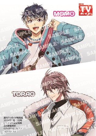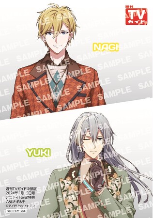 アニメイト(通販・一部実店舗)で「週刊TVガイド1/12号」を購入すると、特典として8パターンの裏表紙と同じビジュアルの<アイドリッシュセブン 特典ブロマイド>を1冊につき1枚プレゼント!