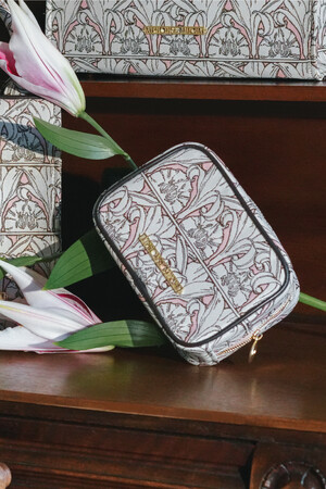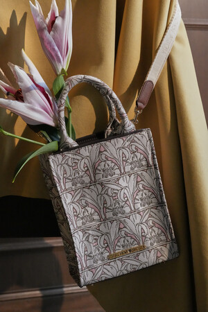 約200年の歴史を経て、現在も優れた織物として有名な米沢織。中でも光沢感があり上品な風合いの高品質なジャガード生地を用いて画家・ミュシャが数多く描いてきた百合のモチーフを表現しました。