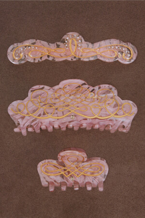 「優れた芸術は全ての人の日常生活の中にあってほしい」というミュシャの哲学に敬意を表し、カジュアルにもドレスアップでも気軽にコーディネートへ取り入れられるアセテートとメタル素材のファッションジュエリーシリーズ。19世紀から20世紀の時代背景を感じさせるアールヌーヴォー調のカリグラフィーをデザインに取り入れました。
