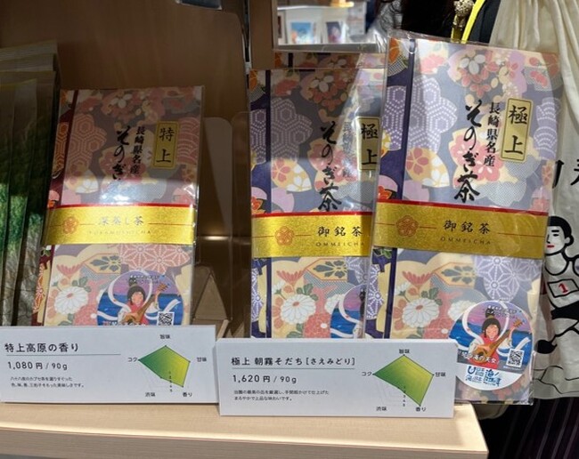 今回コラボした商品のうち「極上朝霧そだち(さえみどり)」は喜々津製茶園の最高の品を厳選し、手間暇かけて仕上げたまろやかで上品な味わい。「特上高原の香り」は八十八夜のかぶせ茶を選りすぐった色、味、香り三拍子そろった美味しさです。