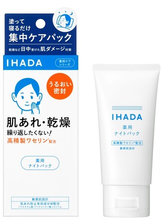 肌あれや乾燥を繰り返すトラブル肌は、うるおいバリア機能が低下しており、特に日中は、乾燥、紫外線などの外的刺激を受けやすい状況です。また、「朝、鏡を見た時」「朝、洗顔をした時」「朝、スキンケアをして肌に触れた時」など、朝に乾燥などの肌トラブルを実感する方が多く見受けられます。そこでイハダは、寝ている間をうるおいリカバリータイムととらえ、日中の乾燥などの肌のダメージ対策として、夜のスキンケアの最後にバーム発想の塗って寝るだけの集中ケアパック「イハダ 薬用ナイトパック(医薬部外品)」を発売します。