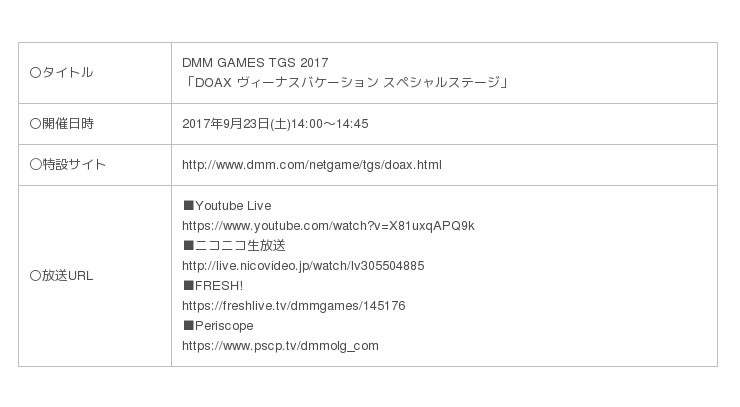 ■DMM GAMES TGS 2017「DOAX ヴィーナスバケーション スペシャルステージ」概要