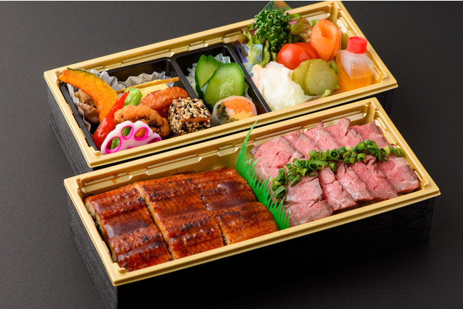 ふっくら香ばしく焼き上げたうなぎとスタミナ満点の牛焼肉を一度に楽しめる贅沢なお弁当です。