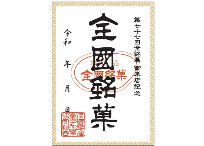 ※第77回全国銘菓展で、「御菓印」に参加している各ブランド内にて、一回のお買いものが税込1,500円以上のお買い上げで各ブランドの「御菓印」を1枚プレゼント。各店数量に限りがございます。