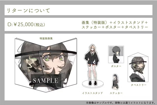 ■Ⅾ. 画集(特装版)+イラストスタンド+ステッカー+ポスター+タペストリーセット 25,000円