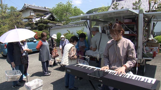 約3人に1人が65歳以上という亀岡市で、去年7月移動スーパーを始めた桃玄義成さん、真実さん夫婦。ユニークなのは、プロのピアニストでもある真実さんがトラックの横でピアノを無料で演奏すること。そんな夫婦の活動は、買い物弱者の助けになるだけでなく、地域住民が集まるコミュニティーも生み出しています。