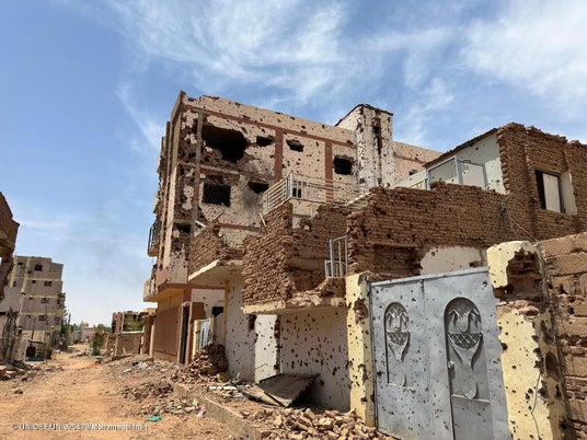 砲撃を受け、廃墟と化したオムドゥルマン市内の住宅や建物の様子(スーダン、2024年8月11日撮影) (C) UNICEF/UNI625428/Mohamedelamin