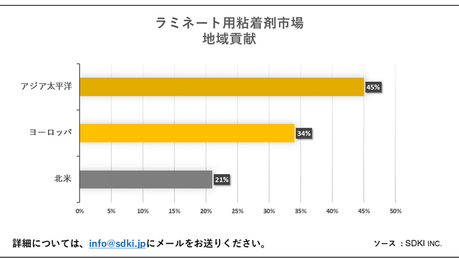 問題:アジア太平洋地域がラミネート用粘着剤市場で最も有利な機会を提供すると予想される理由は何ですか?日本におけるラミネート用粘着剤の市場動向は何ですか?