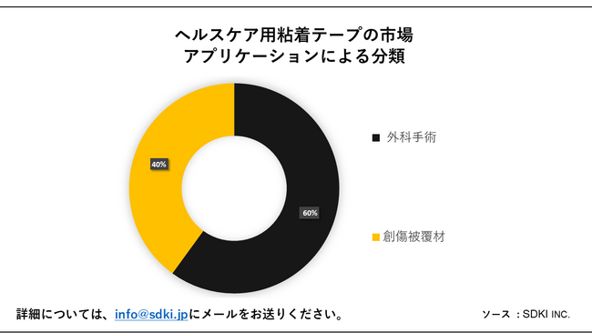 2035年には、外科手術用アプリケーションが最大の市場シェアを占めると予想されています。このタイプは、美容整形手術の需要が高まっていることから、企業での需要が高まると予想されます。米国では、2020年に美容整形手術に160億米ドル以上が費やされると推定されています。一方、創傷被覆材は、急性創傷と慢性創傷の両方に対する被覆材の増加により、6%のCAGR(年間平均成長率)で成長すると予想されています。