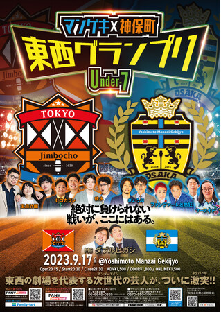 大阪・難波にある「よしもと漫才劇場」と、東京・神保町にある「神保町よしもと漫才劇場」はこの度、よしもと漫才劇場で2023年9月17日(日)に、『マンゲキ×神保町 東西グランプリ ~Under-7~』を開催いたします。