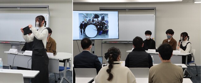 ユニフォームの製作にあたっては、学生自ら「ISETAN STUDIO」の従業員にヒアリングし、ロゴなどの細かいディテールや実際の着用感の確認などのやり取りを通じ、何度もディスカッションとワークを繰り返してきました。2月10日(金)には、成果発表の場として、文化服装学院、モリリン、三越伊勢丹の関係者が一堂に会した「成果共有会」を開催。学生によるプレゼンテーションをはじめ、三越伊勢丹 営業本部 オンラインストアグループ長らによる講評を行い、学びの集大成となりました。