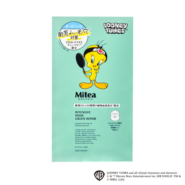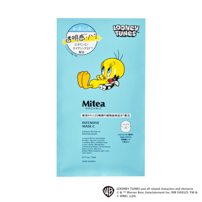 ルーニー・テューンズの個性溢れるキャラクターのなかでも、大きな青い瞳とかわいい声のカナリア、TWEETY(トゥイーティー)をメインキャラクターに、赤い鼻がトレードマークの猫、シルベスターもデザインされたアイテムをラインアップ。シートマスクに描かれたトゥイーティーのイラストは、Mitea ORGANICだけの描き下ろし作品。スキンケアやメイクを楽しみながら、自分自身を丁寧にケアしているトゥイーティーのチャーミングな表情に思わず笑顔に。このコラボレーションでしか見られない、トゥイーティーのイラストと色鮮やかなビタミンカラーのパッケージがスプリング&サマーシーズンのビューティーケアをより楽しく、カラフルに彩ります。