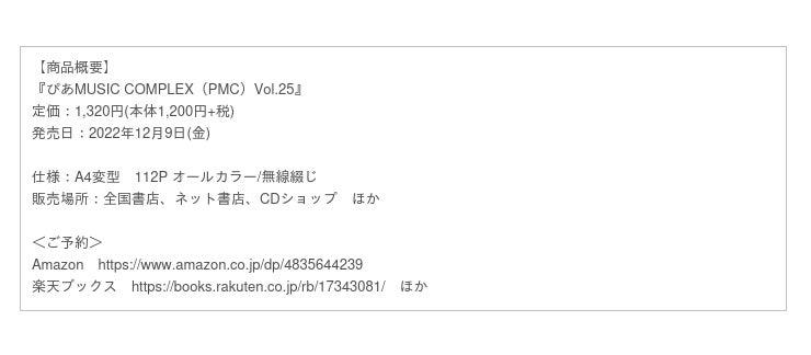 『ぴあMUSIC COMPLEX(PMC)Vol.25』コンテンツ