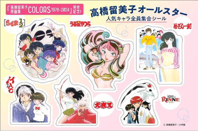 1978年のデビュー以来、漫画界のトップランナーとして走り続ける高橋留美子先生の原画集『高橋留美子原画集 COLORS 1978-2024』が3月29日に発売。それを記念して、女性セブン8号では、『うる星やつら』『めぞん一刻』『らんま1/2』『犬夜叉』『境界のRINNE』『MAO』といった、人気作のキャラクターのシール付録を掲載。原画集に収録されている、貴重なイラストを使った、女性セブンオリジナルシールとなっている。