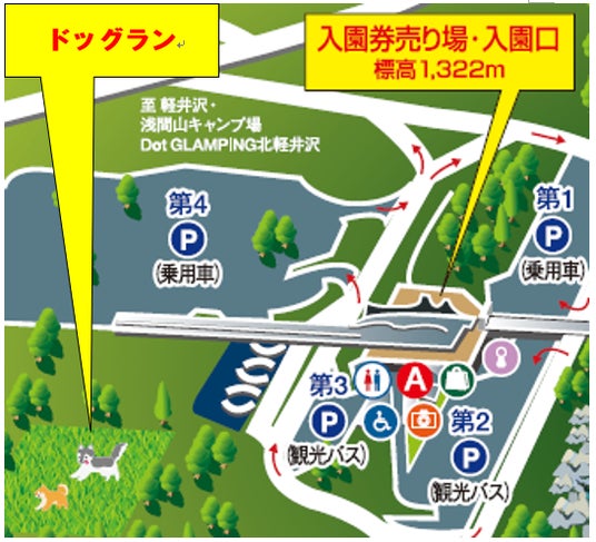 標高1,300mの鬼押出し園では夏の日中でも平均気温は26℃(2023年8月鬼押出し園調べ)。木陰に吹く風は爽やかで清々しくワンちゃんにも嬉しい全面芝生で安心して遊んでいただけます。冬の降雪時には一面雪景色となり、「喜び庭駈けまわり」でお馴染みの童謡の光景が広がります。軽井沢と草津温泉の真ん中に位置する鬼押出し園だからこそワンちゃん同伴の周遊旅行拠点としても最適です。もちろん、鬼押出し園「表参道」「裏参道」からの浅間山観音堂もワンちゃん同伴入園は可能です。(料金別途)