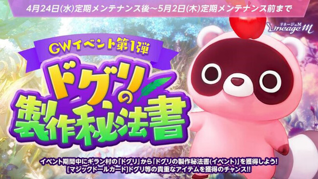 PCオンラインRPG「リネージュ」のモバイル版タイトル『Lineage M(以下、リネージュM)』のサービス、運営をしているエヌ・シー・ジャパン株式会社(東京都港区、代表取締役:金 澤憲(キム テクホン) 以下、エヌシージャパン)は、2024年4月24日(水)に、ゴールデンウィークイベント2種の開催をお知らせします。