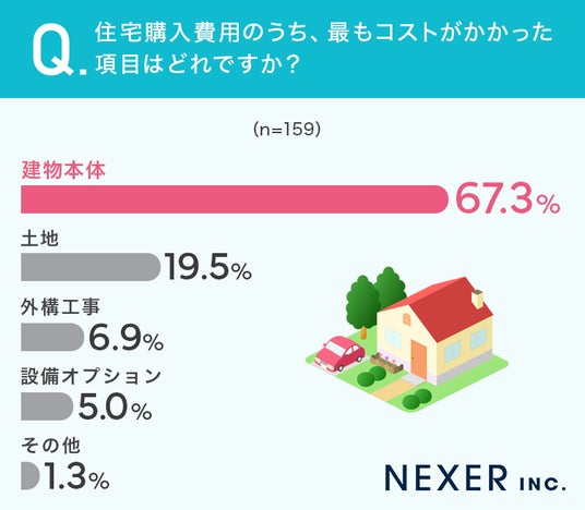 ■67.3%が、最もコストがかかった項目は「建物本体」と回答
