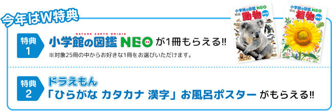 特典1:25冊のラインナップの中からお好きな「図鑑NEO」を1冊プレゼント!