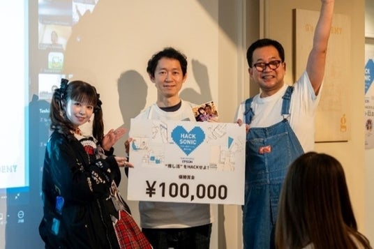 全てのプロダクトが出そろい、審査員による厳選なる審査の結果、見事優勝を勝ち取ったのは、チーム「遠隔お酌」。タレントと大人数のファンが一度に2ショット撮影できるアプリを開発し、会場でのデモで春奈さんを推しに見立てた実演が行われると、会場は大盛り上がり。即イベント導入が可能な実用性や、ファンとタレントが“同じ時間”を共有できる点が高評価を得て、賞金10万円を手にしました。