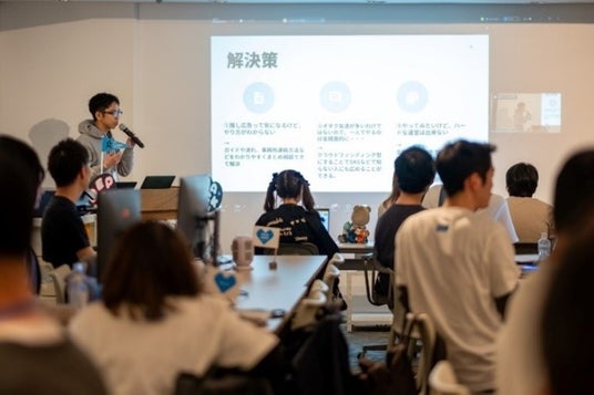 そしていよいよプレゼンテーションタイム。4分間で企画の概要とプロダクトデモを行い、ビジネス面・推し活面・技術面など、多様なバックグラウンドを持つ審査員との質疑応答が行われました。