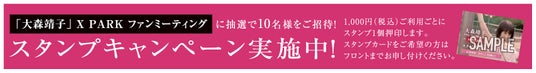 さらに、コラボドリンクご注文でお渡しするスタンプカードに、カラオケご利用金額 1,000 円(税込)ごとにもらえるスタンプを5つ集めて応募すると、「『大森靖子』X PARKファンミーティング」に抽選で10名様をご招待する、スタンプキャンペーンも実施します!