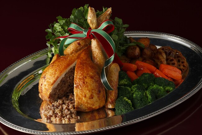 ホテルニューオータニ幕張の総料理長 小出裕之が手がける、自家製テリーヌ、鴨肉、フォアグラなどを詰め込み香り豊かなパイ生地で焼き上げたフランスの伝統料理「鴨肉とフォアグラのパテ・アンクルート」や、国産鶏にスパイシーピラフに仕上げたホテルオリジナルの雑穀ブレンド"Jシリアル"を詰めて焼き上げたボリュームたっぷりのローストチキン「スパイシーJシリアルローストチキン」などクリスマスパーティーに最適な逸品をご用意いたしました。