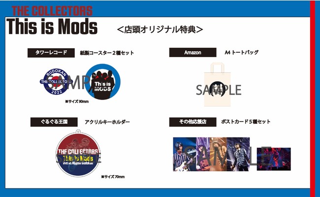 7月20日(水)に発売となる映像作品「THE COLLECTORS “This is Mods” 35th anniversary live at Nippon Budokan 13 Mar 2022」はBlu-rayとDVDの2形態で発売され、ライブ本編の映像に加えて、オープニング映像や当日のライブ音源を収録したCDが封入。さらにBlu-rayには武道館へ向けたリハーサル映像や当日のメンバーを追ったドキュメンタリー映像、加藤ひさしと古市コータローによるオーディオコメンタリーも収録され、フォトブックレットやステッカーシートも封入されるなど豪華商品となっている。