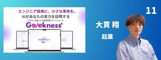 作新学院高等学校商業科卒業。20歳で上京し、独学でプログラミングを学びエンジニアに。SES企業で実務経験を積みながらスキルを磨き、現在はフリーランスとして独立。現場での苦労と成長体験から「実力が評価される世界」を目指し、Geeknessを開発中。