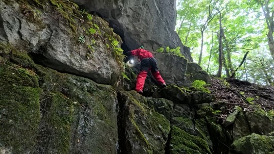 洞窟を探検する松下さんを追いかける取材班。険しい道のりが続きます。そして、開始から5時間後、洞窟の奥には想像もしていなかった不思議な世界が広がっていました…!
