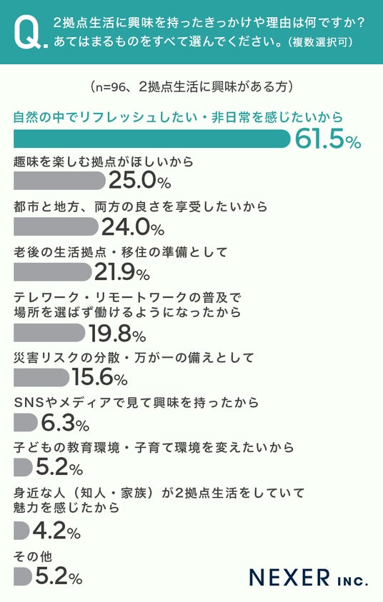 続いて、2拠点生活に興味がある方に、その理由やきっかけについて聞いてみました。