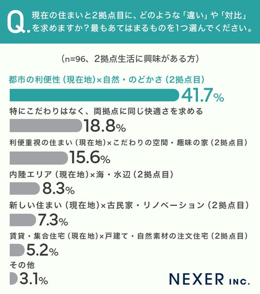 最も多かったのは「都市の利便性(現在地)×自然・のどかさ(2拠点目)」で41.7%でした。
