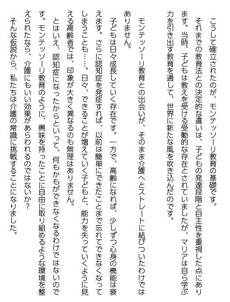 モンテッソーリ教育を介護の現場へ・掲載解説文1