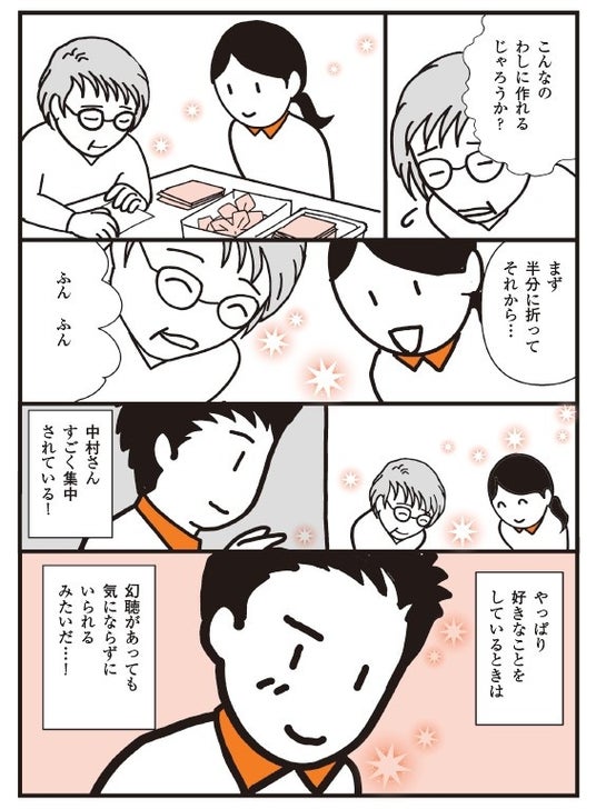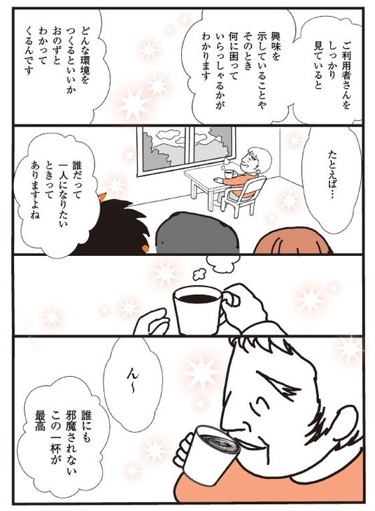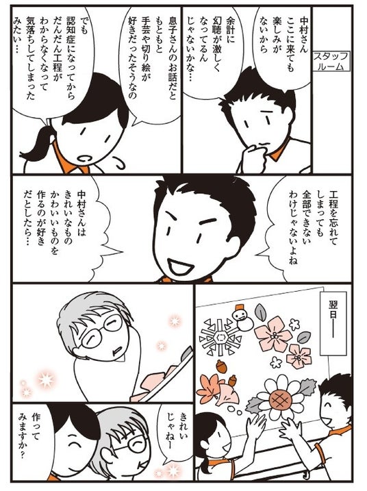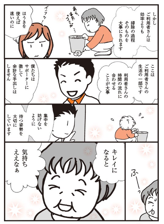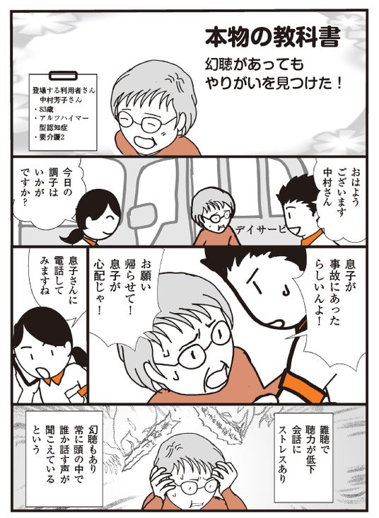 実際の利用者のエピソードをもとにマンガ化。モンテッソーリケアの実践と応用が詰まった事例を紹介します。