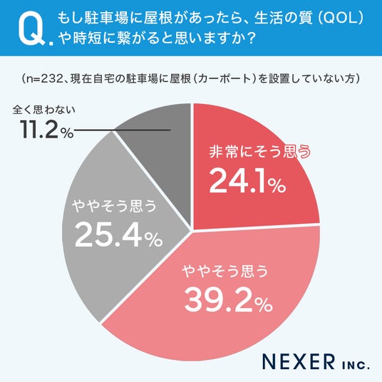 カーポート未設置の方に、もし駐車場に屋根があったら、生活の質(QOL)や時短に繋がると思うか聞いてみました。